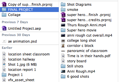 In order to be able to find the files I have to work with in premier, I have labelled each clip and pasted them in a file called "Final project" By doing this my work is easy to find and in order to be able to work with.